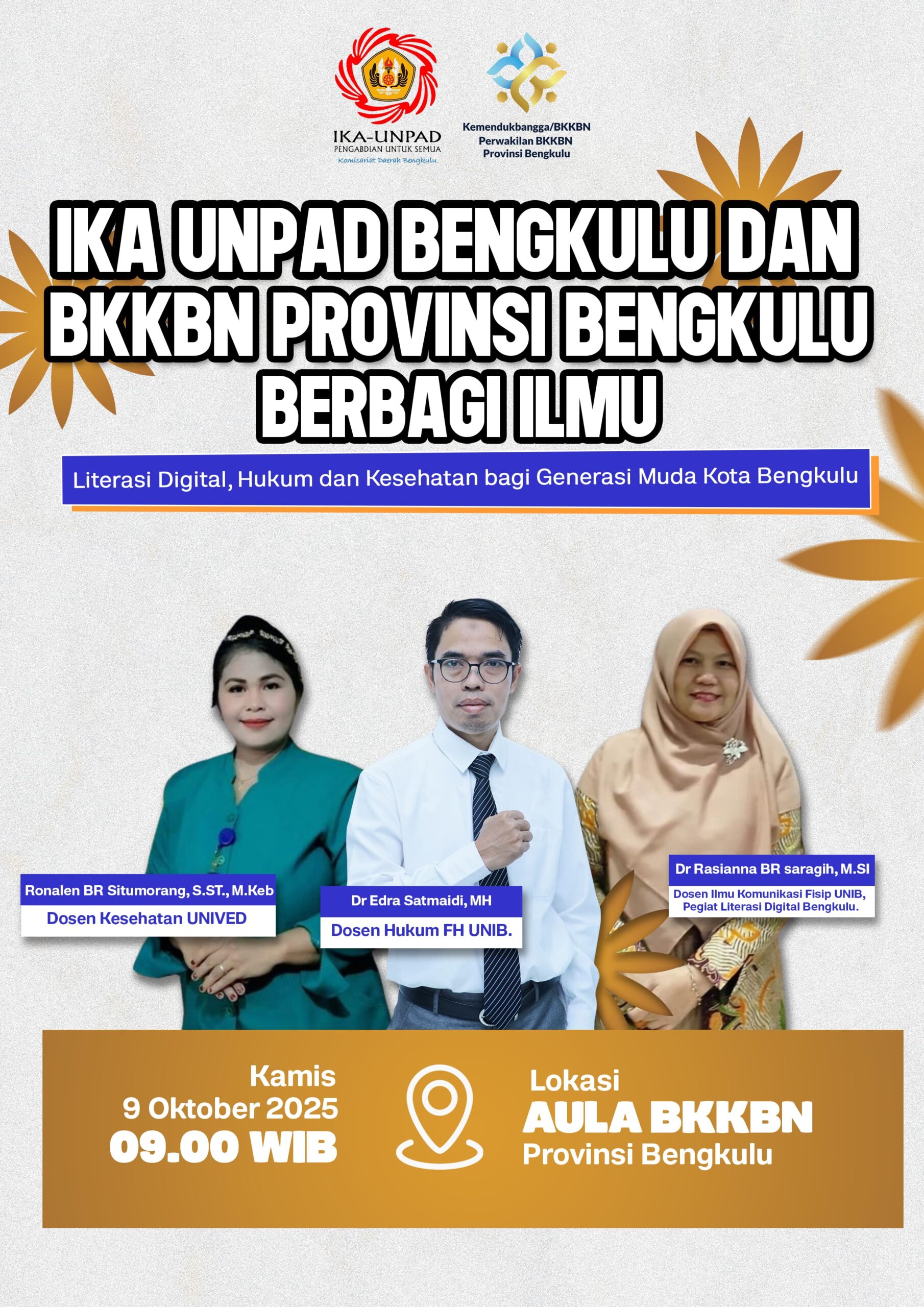 BENGKULU – Fakultas Ilmu Kesehatan (FIKES) Universitas Dehasen (UNIVED) Bengkulu menunjukkan peran aktifnya dalam edukasi publik. Melalui salah satu dosen terbaiknya, FIKES UNIVED berpartisipasi dalam kegiatan kolaborasi “IKA UNPAD dan BKKBN Provinsi Bengkulu Berbagi Ilmu” yang digelar pada Kamis, 9 Oktober 2025. Acara yang dipusatkan di Aula BKKBN Provinsi Bengkulu ini mengusung tema besar “Literasi […]
