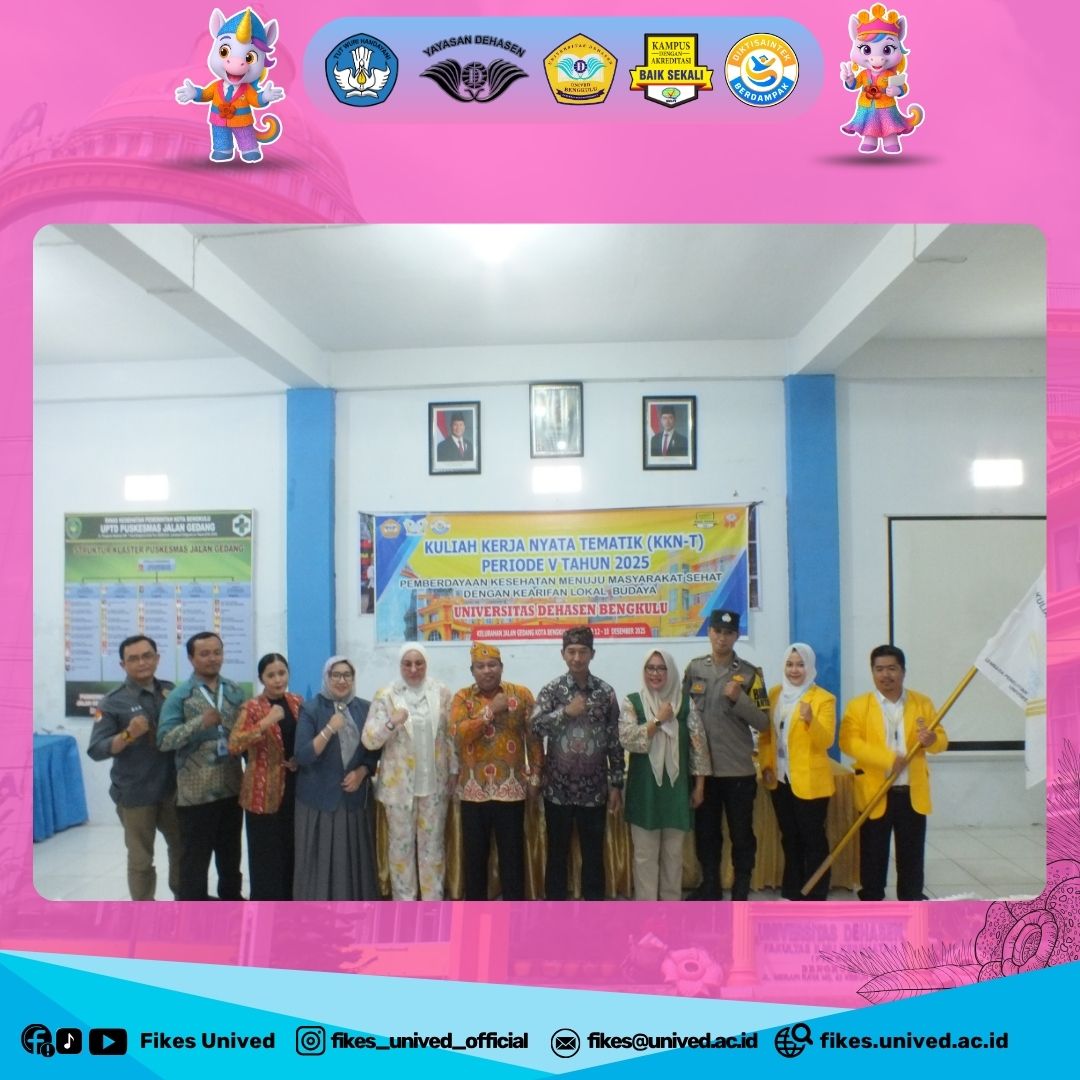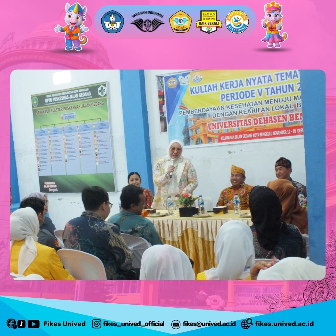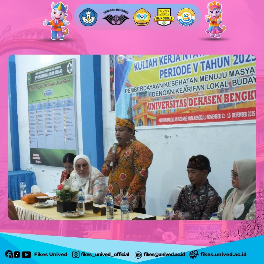 BENGKULU (13/11/2025) – Fakultas Ilmu Kesehatan (FIKes) Universitas Dehasen (Unived) Bengkulu resmi membuka kegiatan Kuliah Kerja Nyata Tematik (KKN-T) Periode V Tahun 2025 Kelas Konversi. Pembukaan ini menandai dimulainya pengabdian mahasiswa di lingkungan UPTD Puskesmas Jalan Gedang, Kota Bengkulu, dengan mengangkat tema sentral: “Pemberdayaan Kesehatan Menuju Masyarakat Sehat dengan Kearifan Lokal Budaya.”
