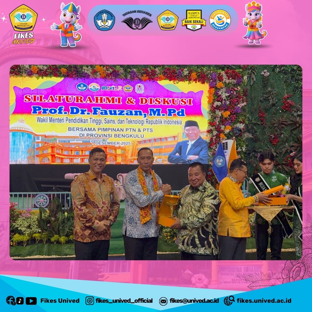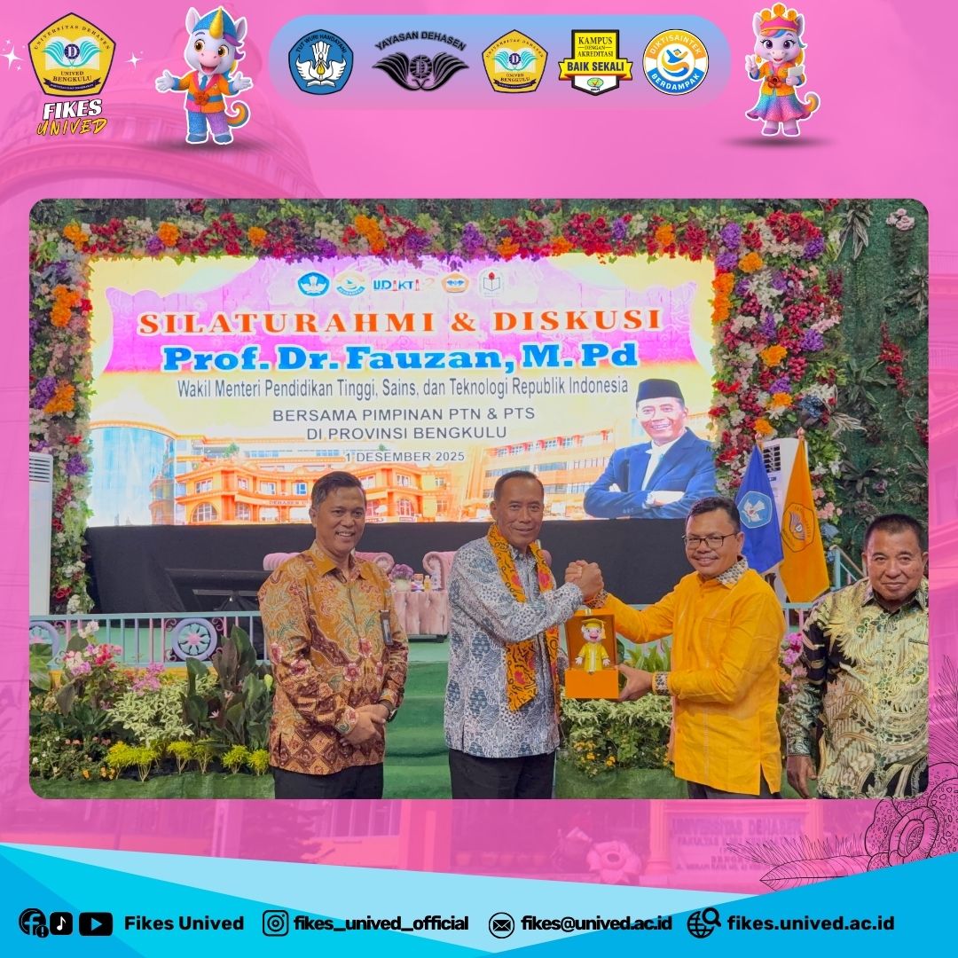 Bengkulu – Fakultas Ilmu Kesehatan (FIKes) Universitas Dehasen Bengkulu (UNIVED) menjadi tuan rumah dalam agenda silaturahmi dan diskusi yang dihadiri oleh Wakil Menteri Pendidikan Tinggi, Sains, dan Teknologi Republik Indonesia, Prof. Dr. Fauzan, M.Pd., pada Senin, 01 Desember 2025. Acara penting ini diselenggarakan di Aula Kampus II FIKes UNIVED dan menyoroti peran strategis FIKes dalam transformasi pendidikan tinggi di wilayah Bengkulu.