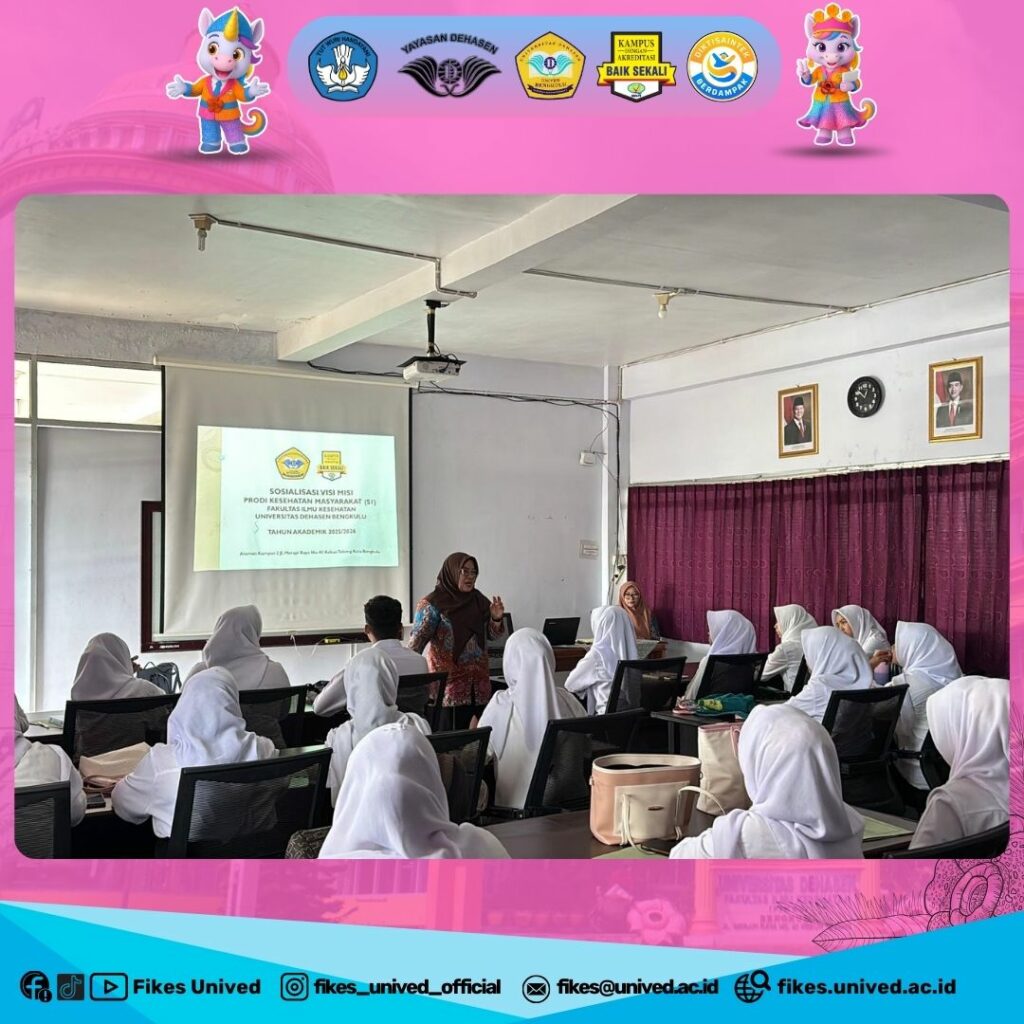 Program Studi (Prodi) Kesehatan Masyarakat S1 Fakultas Ilmu Kesehatan (FIKes) Universitas Dehasen (UNIVED) menyelenggarakan acara sosialisasi visi dan misi program studi. Acara yang berlangsung di Aula Gedung FIKes UNIVED ini dihadiri oleh seluruh mahasiswa baru dan dosen pengajar.