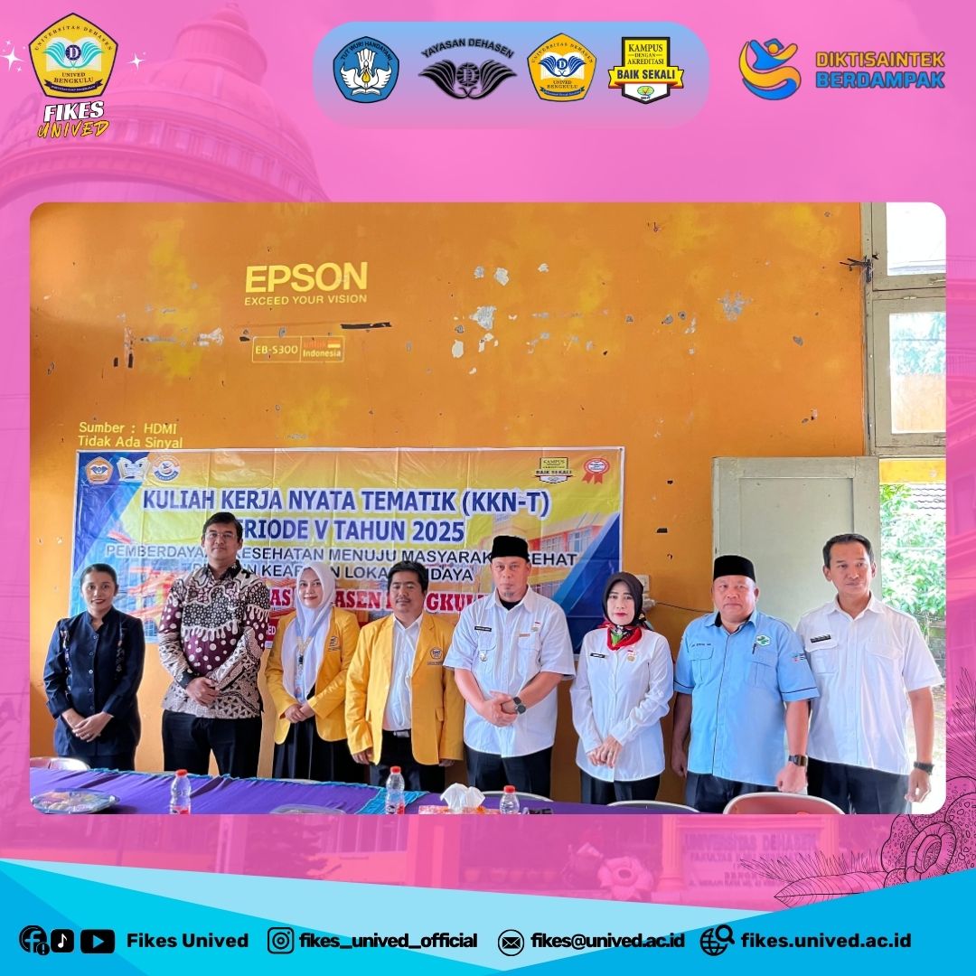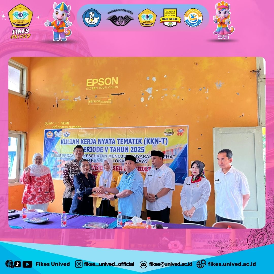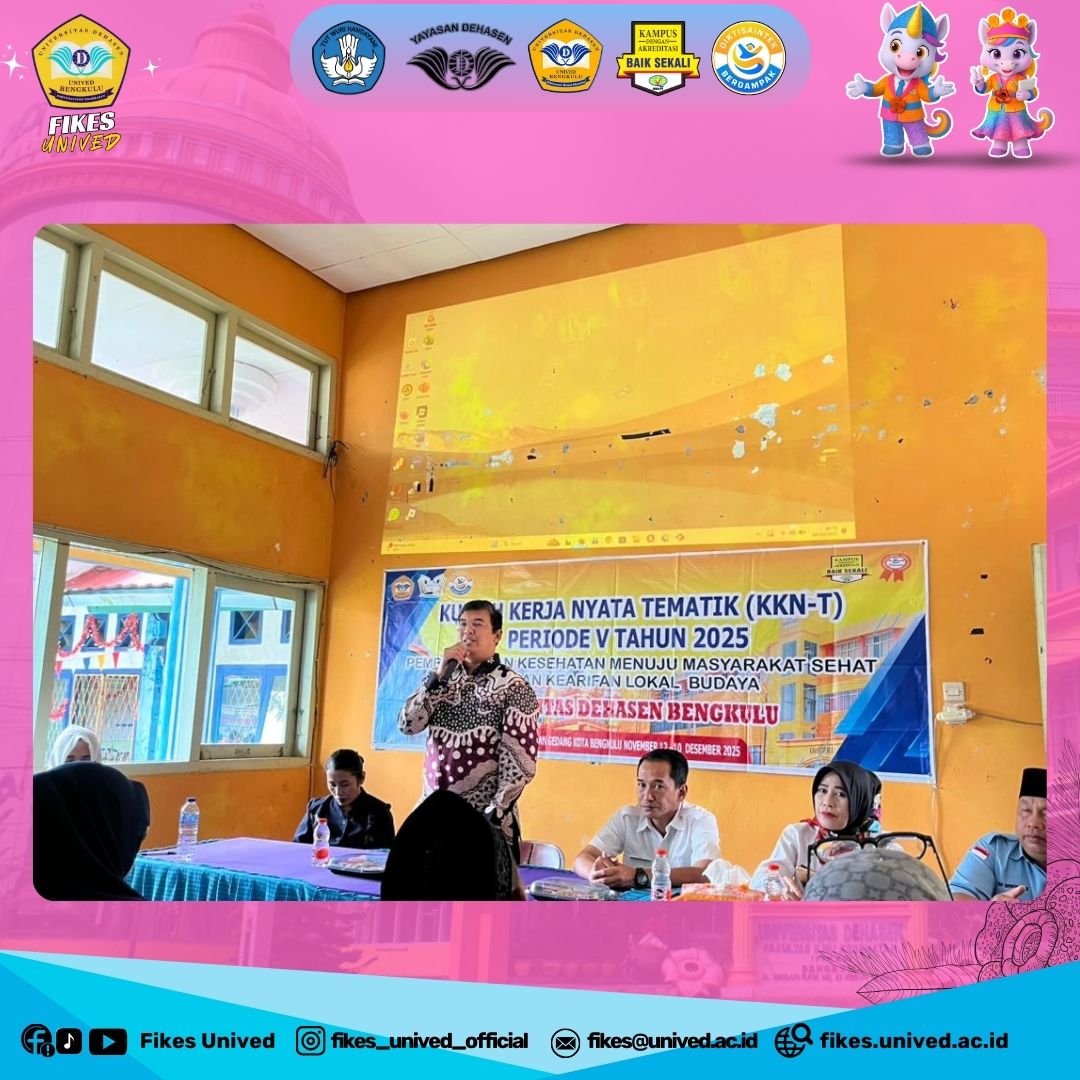 Bengkulu, 10 Desember 2025 — Program Kuliah Kerja Nyata-Tematik (KKN-T) Fakultas Ilmu Kesehatan (FIKes) Universitas Dehasen (Unived) Bengkulu Periode V Kelas Konversi Kota Bengkulu telah resmi ditutup hari ini. Mengusung tema “Pemberdayaan Kesehatan Menuju Masyarakat Sehat dengan Kearifan Lokal Budaya”, program ini dinilai sukses memberikan kontribusi nyata di wilayah Kota Bengkulu.